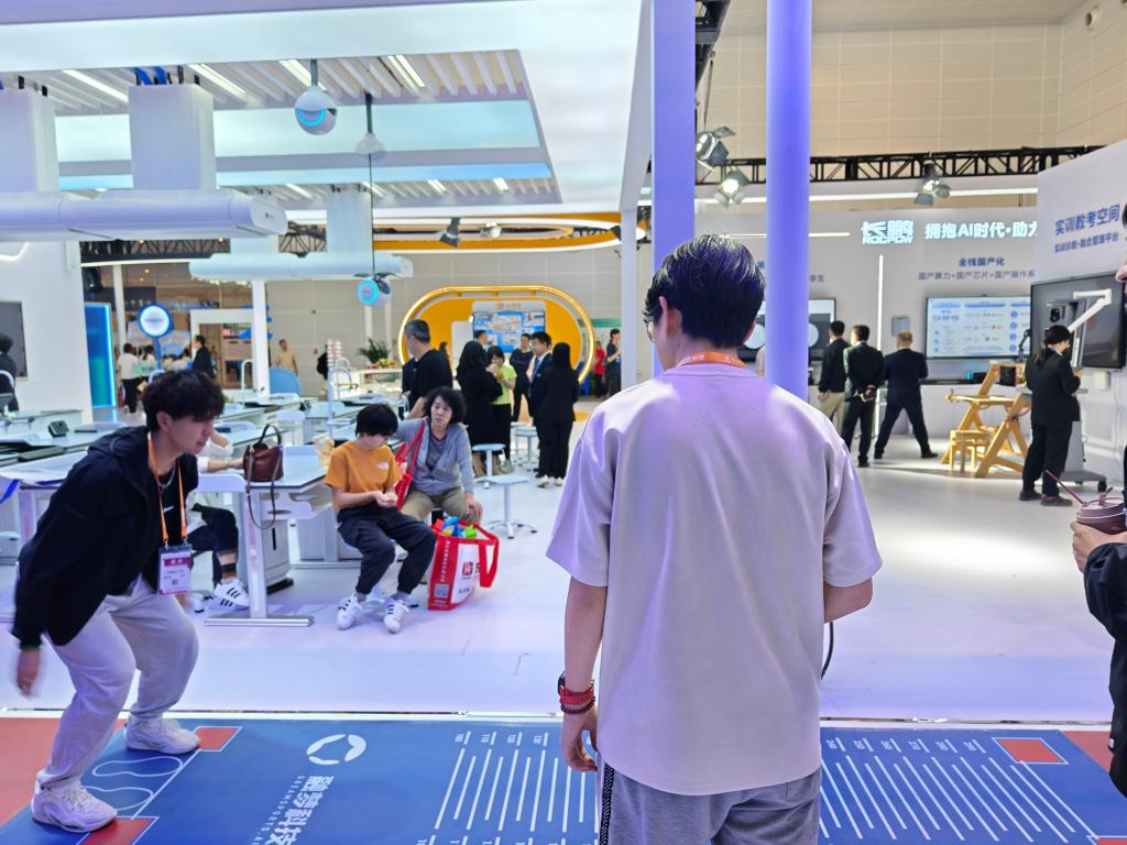 据了解,本届参展企业中包含国家级高新技术企业422家,占参展企业总数的38.8%。人工智能、虚拟现实、区块链等前沿技术在教育领域的深度应用,推动 "教育新基建" 与教育教学的深度融合。从科学课堂的沉浸式实验,到语文个性化写作辅导;从数学学科的智能评测系统,到英语的AI任务链教学,再到生物学科的“AI学伴”智能体……一项项前沿技术与创新产品深深地吸引了IT学子的目光,同学们纷纷表示,数字化教育形态新蓝图让人心潮澎湃,今后将深耕专业学习,做技术革新的先锋,为数字中国建设贡献更多的智慧和力量。