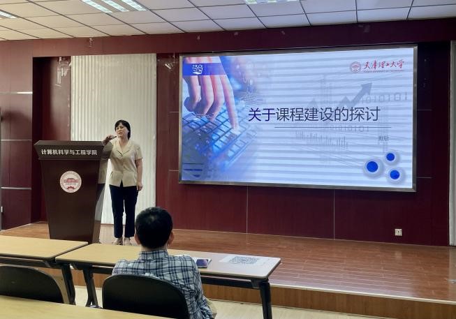 戴敏老师以《数据结构与算法》此门课程为例,分别从课程建设和新形势下的课程建设思考两个维度出发,深入浅出的为与会老师们介绍了自己在教学过程中所采取的有效方法和策略,并从课程目标、教学内容与资源建设、教学组织与教学涉及、教学方法与实施、教学评价等本科教学多角度生动详实的阐释了“如何上好一门课?”