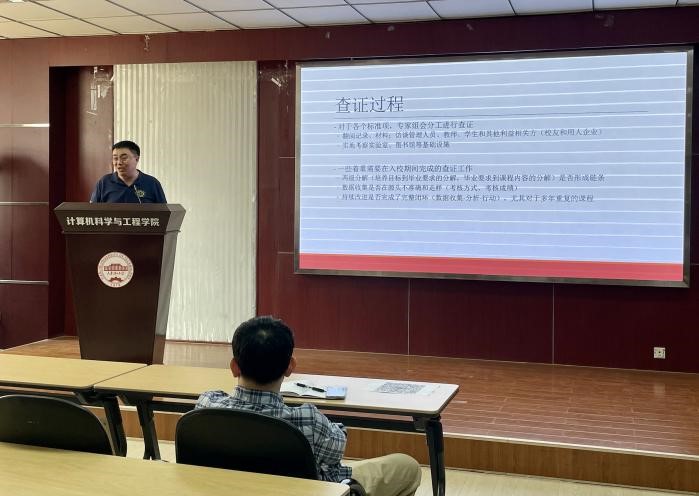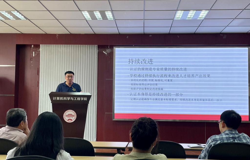 罗训老师以我院计算机科学与工程专业即将进行的工程教育专业认证为背景,进行了主题为“从认证标准的外延与内涵看工程教育的国际实质等效”的报告,从自身工程教育专业认证经历、认证对于专业的意义以及专业认证的大致流程和注意事项等方面说明了专业认证对专业建设的重要性,并指出专业认证实质是质量达标认证,是为专业水平进行的“年度体检”,是从发现问题到持续改进的一个过程,最终达到专业优化的目标。