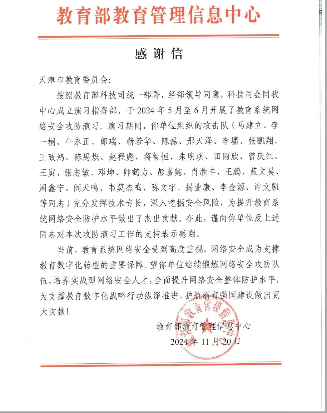 为进一步贯彻落实教育部教育管理信息中心与天津市教委对增强教育行业网络安全意识,提升行业网络安全防护能力,发现、消除行业单位网络安全隐患的要求,2024年5月至6月,我院教师靳若华,学生肖胜...2024-12-03
